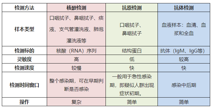 核酸、抗原和抗體檢測各有側(cè)重,不能相互替代,多種檢測方法聯(lián)合應(yīng)用,互為補(bǔ)充,發(fā)揮各自優(yōu)勢,可有效縮短檢測窗口期,提高檢測效率。