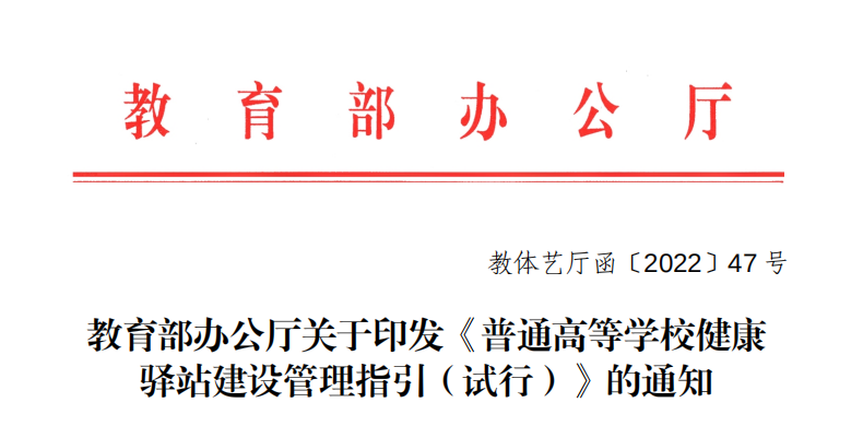 近日,教育部辦公廳印發(fā)了關(guān)于《普通高等學(xué)校健康驛站建設(shè)管理指引(試行)》的通知(以下簡稱《指引》),以此進(jìn)一步引導(dǎo)規(guī)范高等學(xué)校健康驛站建設(shè)。