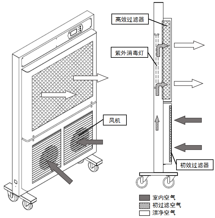 BIOBASE/博科紫外線空氣消毒器是利用風動系統將室內污濁的空氣吸入設備中,經過濾系統、殺菌系統對吸入的空氣進行凈化消毒處理后放回室內,通過不斷的循環使室內空氣質量逐步提升到一定潔凈等級,以達到去除室內有害氣溶膠、保護人員健康的目的。