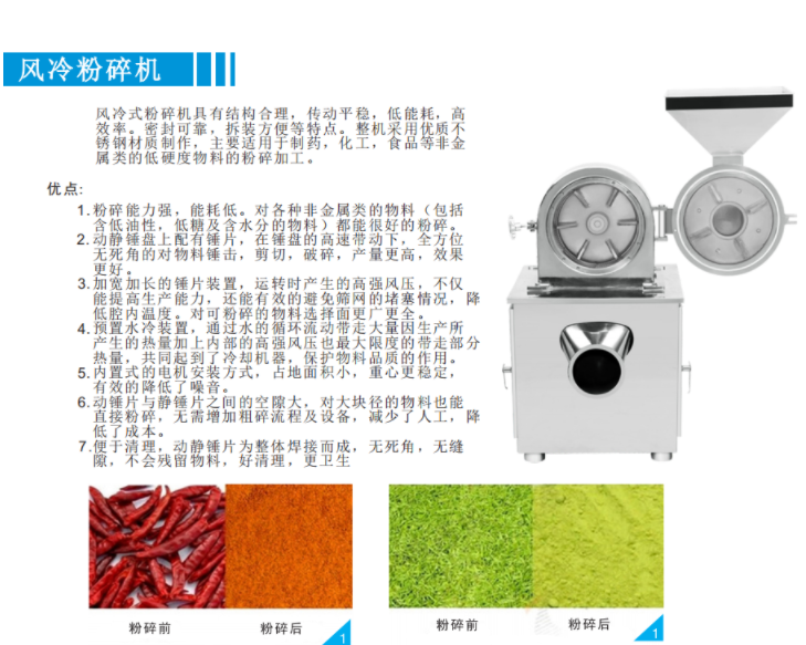 FL-200風冷粉碎機結構合理,傳動平穩,低能耗,高效率,拆裝方便。